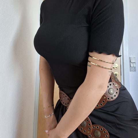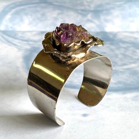 Smuk armring til håndleddet. Stemplet KK s925/18k. Ringen rundt ravet er 18k guld. Indvendig mål 55-57 mm. Trådtykkelse 3-4 mm.