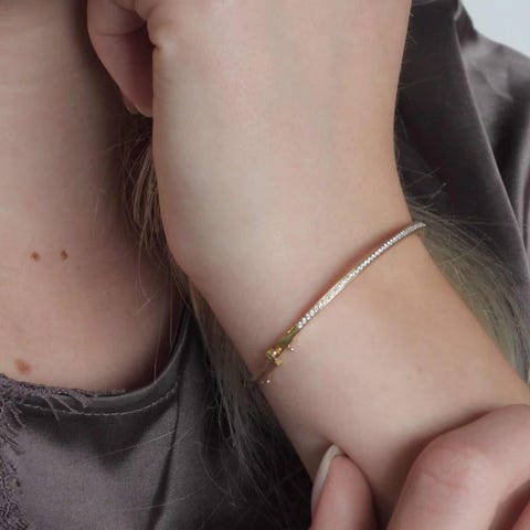 Denne utrolig smukke og elegante armring fra Klarlund er et must-have for enhver, der ønsker at tilføre et luksuriøst touch til sit look. Med fine små diamanter i den bedste kvalitet, er det en tidløs og sofistikeret detalje til din smykkesamling.