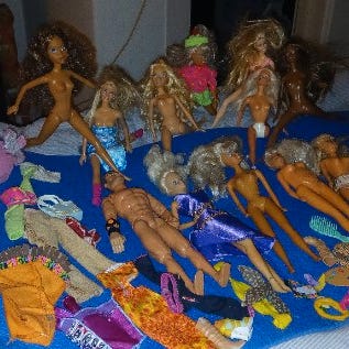 Barbie The Movie Barbie og Ken dukker sæt med tøj og tilbehør. Barbie dukken har lyserød og hvid ternet kjole, mens Ken dukken har badetøj med striber og åben skjorte. Sættet leveres i original emballage med billeder af dukkerne og filmen. Sælges samlet