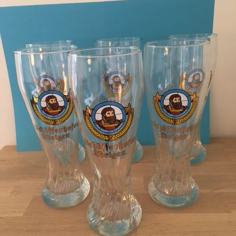 6 flotte ældre ølglas med originalt tysk motiv