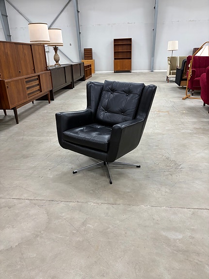 Vintage højrygget øreklap lænestol samt egetræ ben