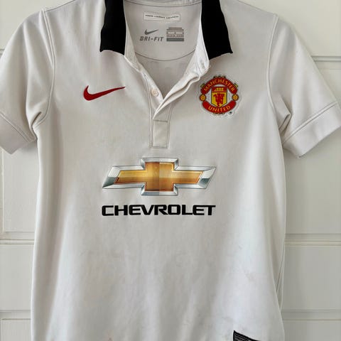 Den hvide udebanetrøje fra Nike står som et symbol på en af de mest dramatiske sæsoner i Premier League-historien. En sæson, hvor United var sekunder fra endnu et mesterskab, men i stedet måtte se City løfte trofæet.