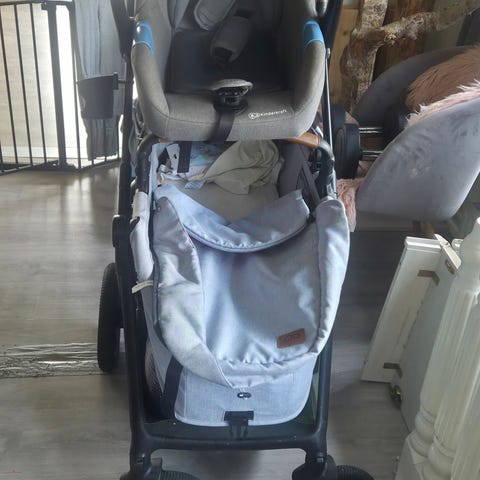 Kinderkraft barnevogn og autostol sæt i sort farve. 3 i en barnevogn.