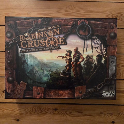 Z-Man Games Robinson Crusoe brætspil med eventyrtema og overlevelse.