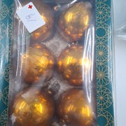 Sættet indeholder seks prydkugler i forskellige farver med glat og skinnende overflade. Her en æske med assorteret kugler. Kuglerne kan være skrøbelige, da de er af ældre dato ,Bemærk at mail, chat og beskeder ikke besvares, og varen skal købes på knappen "Gå til varen"