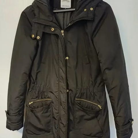 Vinterjakke, str. 38, H og M, Sort, Polyamid, Næsten som ny, Retro vinterjakke med strik krave. Har to lynlåse lommer.