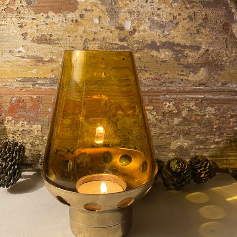 Gamle og med meget tykt farvet glas på alle 4 sider, alt glas fint og intakt, zink med patina. Samlet pris