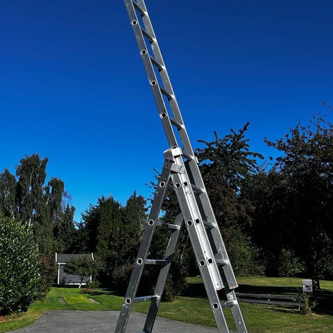 Næsten 4 meter høj teleskopstige med 13 trin/udtræk i let aluminium. Meget kompakt, så den er både nem at transportere og opbevare. Desuden smart detalje med farvekoder, så det er tydeligt om det enkelte trin er låst. Se også billeder. Højde op til 380 cm Sammenfoldet: 48 x 8 x 90 cm Bæreevne: 150 kg Vægt: 11 kg EN 131 godkendt Nr. 8009386
