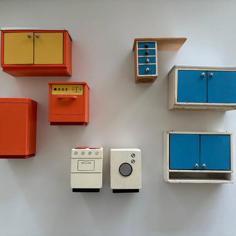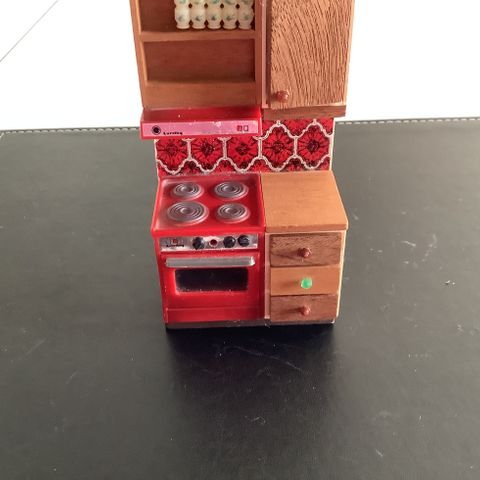 Lundby retro manor køkken refererer til et detaljeret dukkehus-køkken fra det svenske mærke Lundby, der indeholder et køkkenmodul med håndvask, kogeplade, ovn og køleskab, over skabet over køleskabet kan ikke åbnes i skalaen 1:18 i træ og plast i flot retro farve brunlig nuance. sælges samlet pris 240 kr. jeg sender køber betaler fragt
