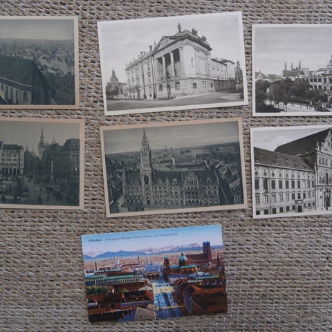 6 sort/hvide postkort fra München.