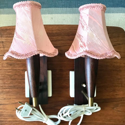 Fin, lille og elegant væglampe i palisander vil jeg tro og med messing holder.