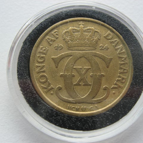 L-113 - Danmark 1 kr 1924 HCN 6,5 gram aluminiumsbronze , meget sjælden i god tydelig udgave Pris kr. 1950,-