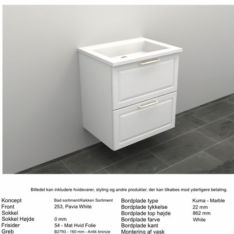 Alapé Badmøbel inkl. Vola armatur og spejl fra Marbré