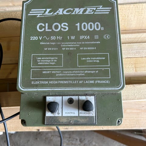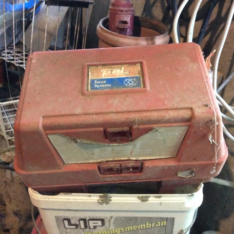 Rusland aggregat strøm boks til batteri el hegn. Den bruger et bilbatteri. Er brugt til hestehegn.