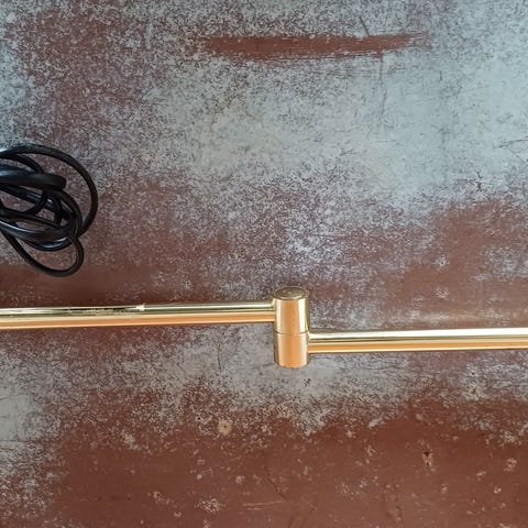 Sælger denne klassiske og funktionelle væglampe, også kendt som en sakselampe eller udtrækslampe, fra danske producent. Lampen er udført i massiv messing med en smuk, rillet struktur på udtræksarmen.