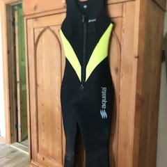 Våddragt/dykkerdragt fra aqualung. Dragten er en regulær dykkerdragt, men kan også fint bruges som "overfladedragt", da den lynes i ryggen. Det vil sige ingen generende lynlås, når man ligger på paddleboardet eller lignende. Dragten er brugt, men fin og funktionel og frem for alt uden nævneværdig brugsslid.
