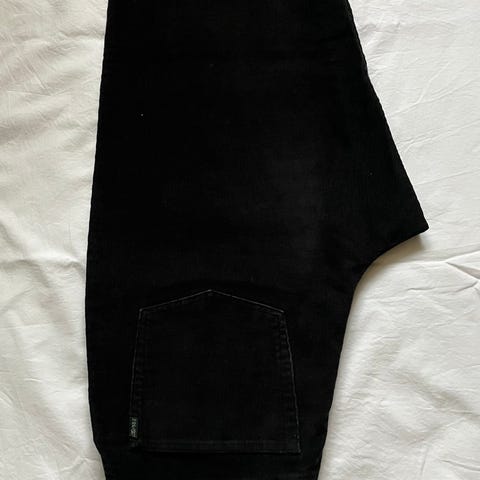 Jeans Esprit str. 42. Meget mørkegrå med lysegrå striber. Nærmest så fine som nye. Mål i toppen: 88 cm, det bredeste sted på hoften: 108 cm. Indvendig benlængde: 82 cm. Ann. nr. D76