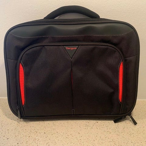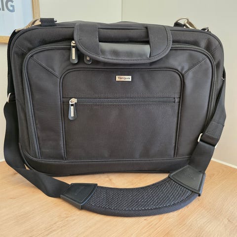 Dertil 2 udvendige rum på hhv. bagsiden af tasken og låget.