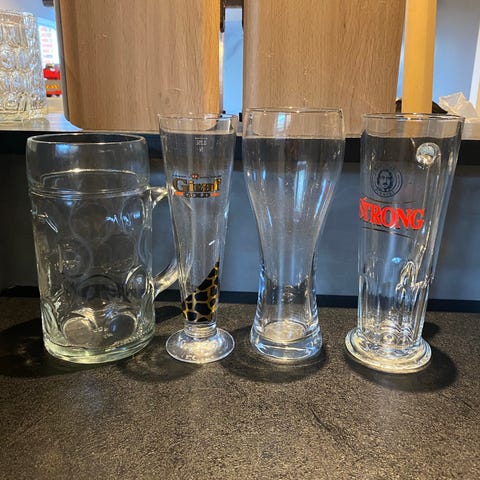 9 ens drinksglas / sølvkrus i forsølvet messing / sølv look. De er alle med rigtig flot patina udenpå, men et par af dem er noget irret til i bunden, se foto. Man kan af kosmetiske årsager pudse dem nede i, men de være bør være ufarlige at benytte, især når vi snakker lejlighedsvis brug. OPlagt til nytårsaften fx.