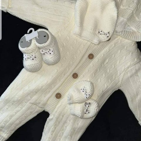 Baby overtøj efterår/vinter. Str. 56/62. 3 stk. Stjerne dyne dragt står som helt ny. De to andre som alm. brugt. Farve: Grå/hvid.