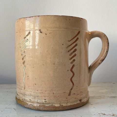 Almue lågkrus, Dekoreret Træ , 125 år gl., Meget dekorativt lågkrus dateret 1898. Både stave og tøndebånd er intakte. Enkelte ubetydelige afslag af maling. Signeret og årstal med blyant. Antageligt svensk.