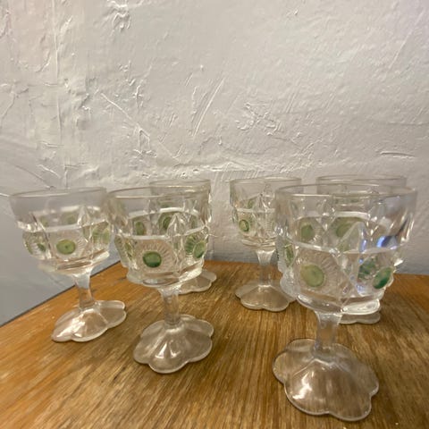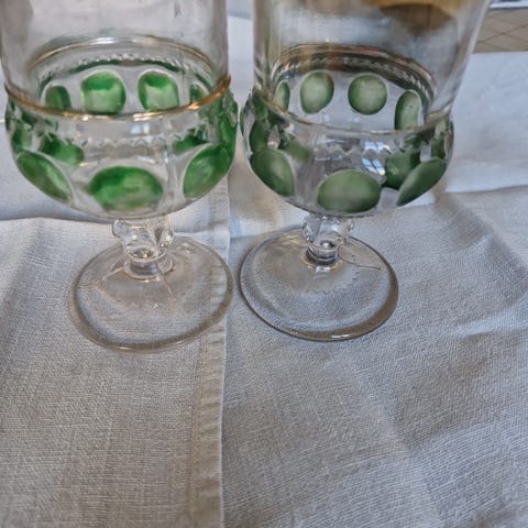 Amerikansk opsats fra Indiana Glass, Avocadogrønt Presset glas, 100 år gl.