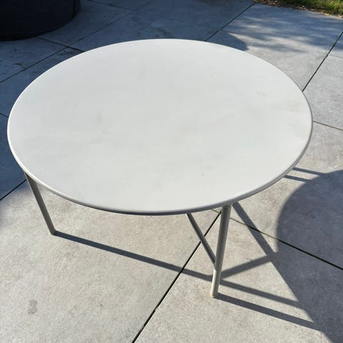Have loungebord i pulverlakeret sandfarvet aluminium,med plade i fiberbeton.