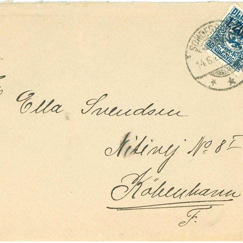 Frederiksberg. Tofarvede. 8 øre og 12 øre, brev til Slesvig, 1886