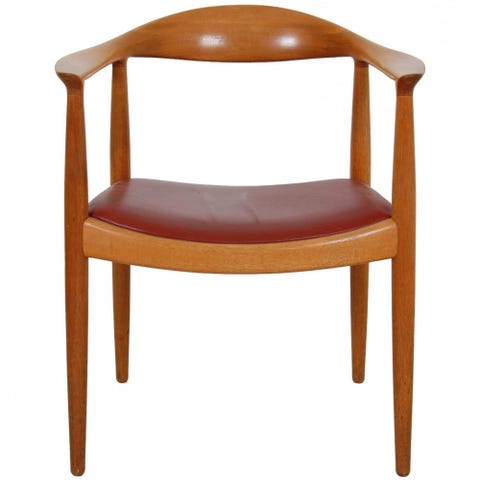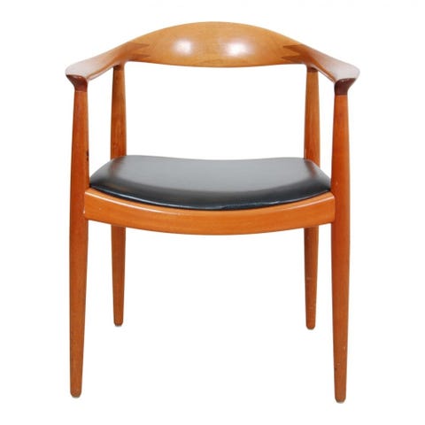 Hans Wegner The Chair med stel af lakeret kirsebærtræ og med sæde af naturlæder. Stolen er fra omkring 1990'erne og fremstår med kraftig patineret læder, samt med et par mærker og ridser i stellet. •Designer: Hans Wegner •Producent: PP møbler •Produktions år: Omkring 1990'erne •Model: The Chair •Mål: Højde 76 / Bredde 63 / Dybde 52 / Sædehøjde 44 Cm •Materialer: Stel af lakeret kirsebærtræ og sæde af naturlæder •Stand: Brugt Hans Wegner The Chair i kirsebærtræ og med sæde af naturlæder.