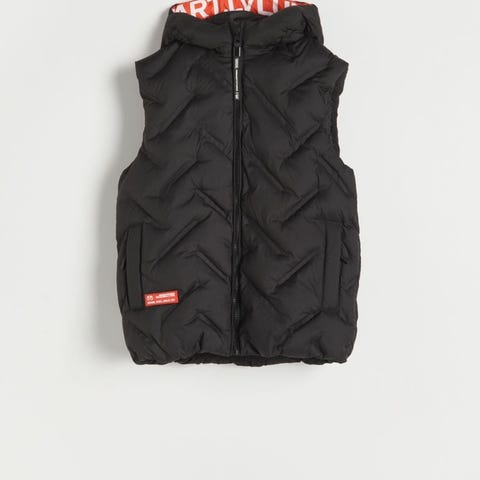 Børnevest i størrelse 104, farven orange. Vesten er designet til børn og er unisex. Materialet er polstret med quiltede sømme for ekstra varme og komfort. Velegnet til udendørs brug som et let isolerende lag.