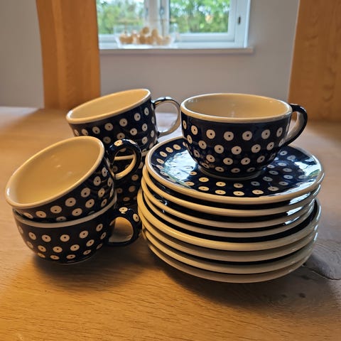 Jeg sælger her 11 vanvittigt charmerende og flotte sæt af kop og underkop fra Boleslawiec.