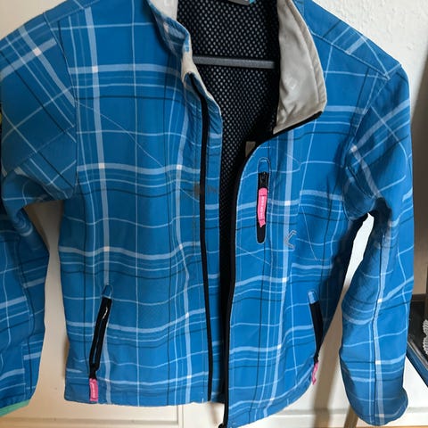 Drengejakke i blå og sort farve. Jakken har en hætte og er designet til udendørs brug. Materialet er velegnet til beskyttelse mod vind og vejr. Fejler intet, Mærke Whistler