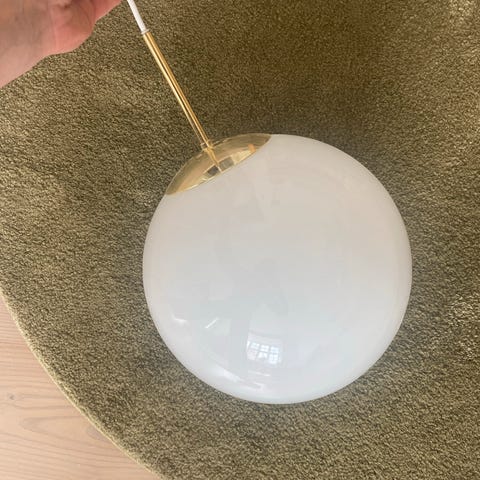 Cafe-pendel, 3 styk, som er blevet til overs efter en køkkenrenovering. Lamperne er fine og fejler intet. Den ene af lamperne låses med en lille pinolskrue, de to andre med en lille almindelig stjerneskrue.