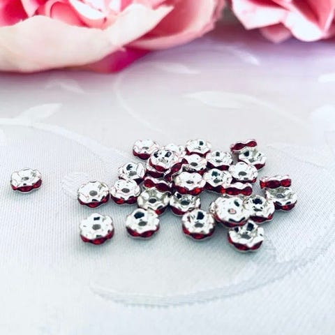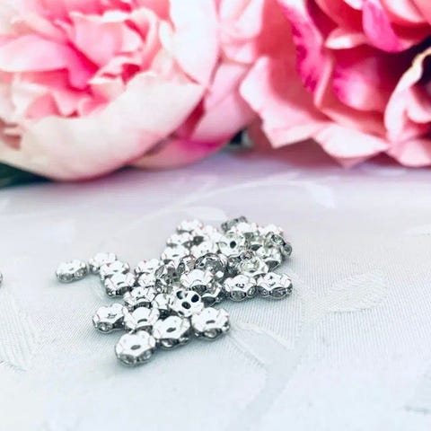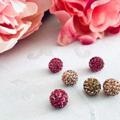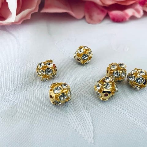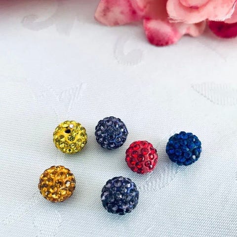 Smukke rhinstens perler, multi farvet med små glimtende Rhinsten, 5 stk. 7 mm. Smykkefremstilling. Disko, diskokugler, kugler. Prisen er for alle, sælges kun samlet.Fast pris