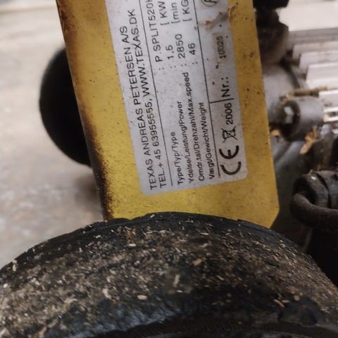 Loggy V 5 trækløver med en effekt på 1,85 kW og spænding på 230 V. Maskinen har en kapacitet til at håndtere trøkløvning en vægt på 65 kg. Den er konstrueret med en robust grøn metalramme og har hjul for mobilitet.