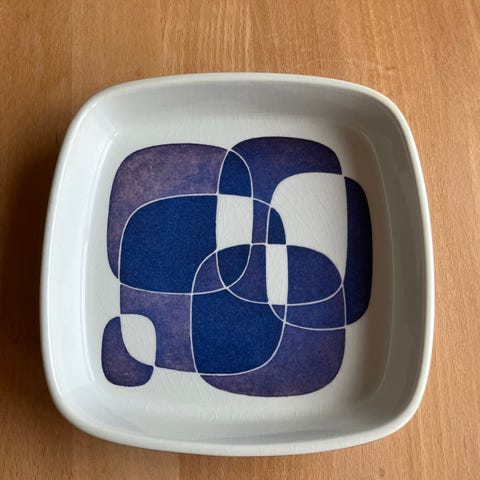 Askebæger med blomst, Ø9 cm, H3 cm. Ø9 cm, H3 cm. Pæn stand. Fra et røg- og dyrefrit hjem.