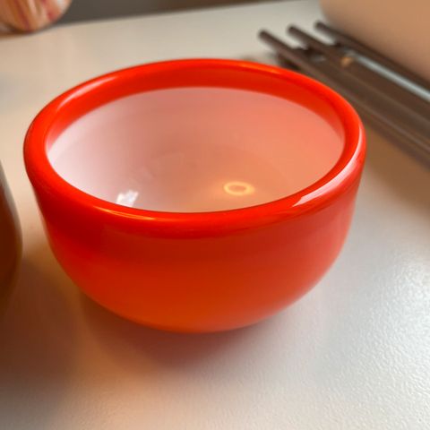 Meget fin gammel orange retro Palet skål fra Holmegaard. Uden skår. Designet af Michael Bang i 1970.