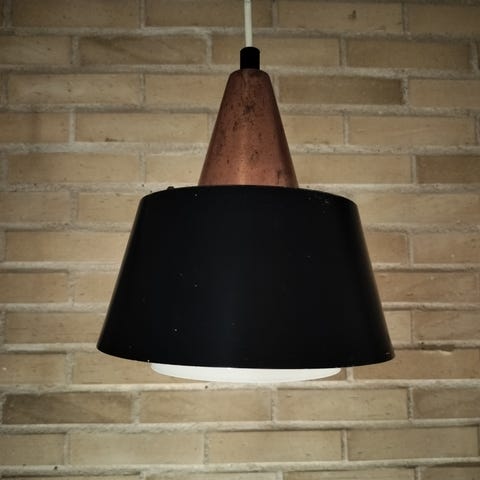 Gedigen og tung loftlampe designet i 70'erne. Farven er petroleumsgrøn. Den måler 54cm i dm. Har få brugsspor, skal dog have ny ledning. Den befinder sig på Mols, men kan medtages til Aarhus efter aftale. Sender den ikke, men det gør jeg gerne med de fleste af mine lamper.