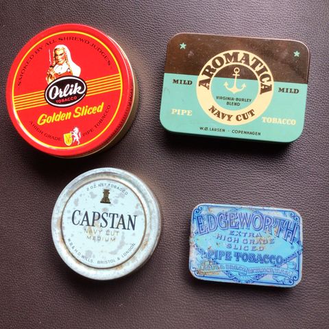 Gammel æske af pap til shagtobakmærket Fregat Shag fra Christian Augustinus, varemærkeregistreret første gang i 1935, længe før firmaet blev til Skandinavisk Tobakskompagni.