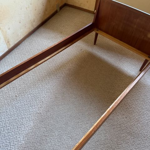 Smuk gammel teak seng med sort læder gærde