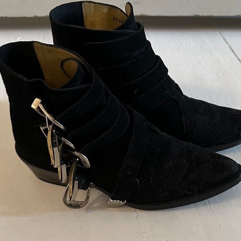 Toga buckles cowboy bikerstøvlette sort ruskind model aj006. Fin stand, ikke brugt særlig meget.
