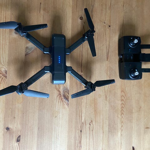 Sælges da min kæreste har købt en nyere version og derfor ikke længere anvender denne drone. Det sidste foto, er for at vise hvordan opløsningen er på drones kamera - det er taget med dronen.