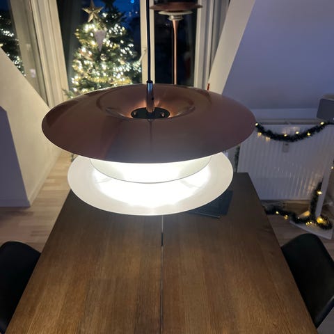 Diablo loft lampe diameter 50 cm højde 20 cm. og bordlampe højde 50 cm. diameter 30 cm. Begge i meget flot stand.
