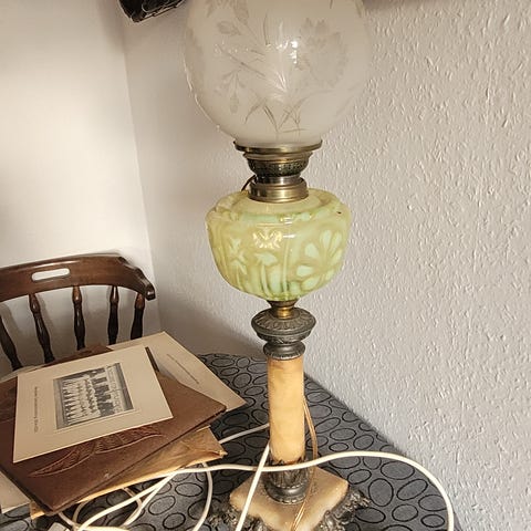 Olie/Petroliums lampe BEG MATADOR IMPORT 56 cm høj glasskærm og røgglas er hele uden skår står klar lige til at bruge en rigtig fin lape. Er nok over 100 ær gammel. Velegnet hvis strømen svikter så har du lys. Kun 250 kr det er meget billig for så fin en lampe (( har 2 stk men de er ikke ens den har grøn skærm og anden fod 56 cm høj ))