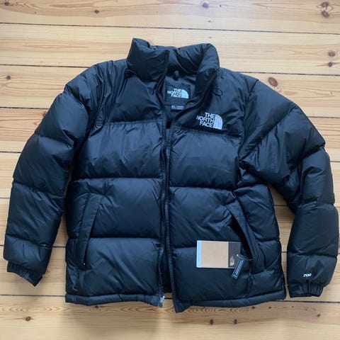 The North Face Jakke i sort farve, størrelse M til mænd. Jakken er designet til udendørs brug med flere lommer og en hætte. Materialet er robust og velegnet til forskellige vejrforhold. Hyvent materiale mod regn.