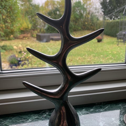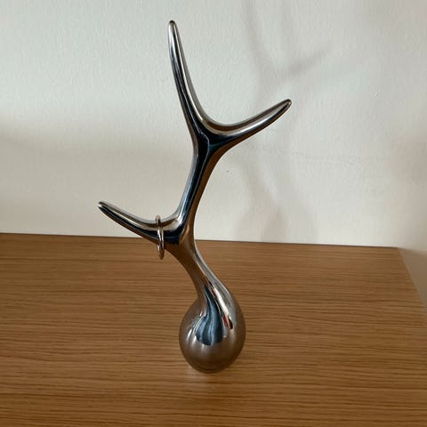 Dette smukke og elegante smykketræ fra Menu, er designet i højglanspoleret aluminium, som tilføre designet et eksklusivt udtryk, samtidigt med at den har den fornødne vægt til at holde dine smykker, uden at vælte. Derudover har dette populære smykketræ et smukt og simpelt design, som er dekorativ, at have til at stå fremme. Placer både fingerringe, armbånd, kæder samt øreringe, hvor smykketræet giver dig et godt overblik over dine smykker og hvad du har at vælge imellem. Menu har formået at designet et smykketræ med et skulpturelt og dekorativt udseende som tilmed er praktisk i daglig brug.