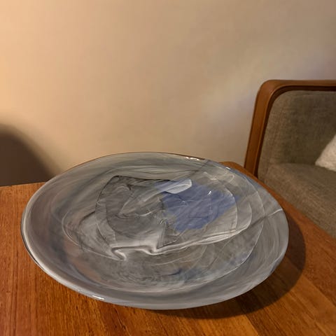 Elegant mundblæst hedvinsglas fra Holmegaard Glasværk, fremstillet omkring 1920 og designet af Svend Hammershøi. Glasset måler 11,2 cm i højden og har en karakteristisk kuglet bund. Både kumme og stilk er dekoreret med fine facetslibninger, der fanger lyset og fremhæver glassets håndværksmæssige kvalitet. Serien blev produceret frem til 1960 og er et tidligt eksempel på Hammershøis evne til at forene funktion og ornamentik i dansk glaskunst. Margrethe-glasset repræsenterer en klassisk æstetik med tidstypisk elegance og er i dag et eftertragtet glas.