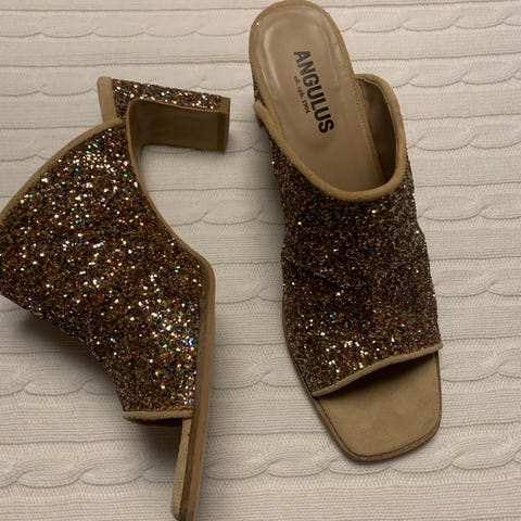 Flot Angulus slip-in sandal i flettet skind, 6 cm hæl.