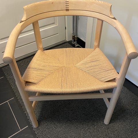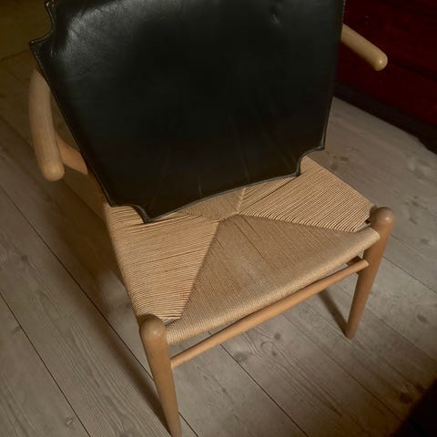 Hans J. Wegner 1914-2007. Stol ‘Jakkens Hvile, model PP250 af massiv Wengé med indlægningsdetaljer samt sæde af ahorn. Designet i 1953. Stolen i træsorten wengé blev fremstillet i et begrænset antal på 13 stk. af PP Møbler år 2011 hvoraf denne stol er nummer 5, hvor af to kun to stole blev lavet med ahorn sæde. H. 95/44 B. 51 D. 48 cm. Fremstår med minimale brugsspor.