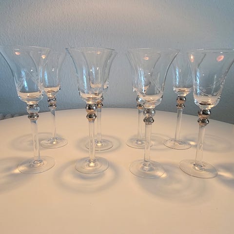 13 mundblæste vinglas køb fra Glaspusteriet Lofstad, Viborg. Se billederne for de forskellige farver på stilkene. Sendes ikke. Pris pr. stk. 100 kr. Samlet 1.000.